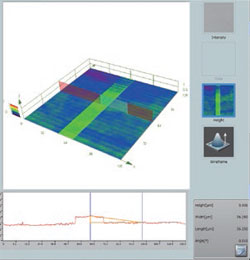 0.12μm行間距 | ![]() 高度差標(biāo)準(zhǔn)類型B, PTB-5, Institut für Mikroelektronik, Germany, 6 nm高度測量中的檢測 |