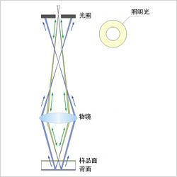 將專用物鏡與環(huán)形照明組合,不需要進(jìn)行被檢測(cè)物背面的防反射處理,就可測(cè)定最薄0.2mm的反射率*。*使用40×物鏡時(shí),在本公司的測(cè)定條件下進(jìn)行測(cè)定。