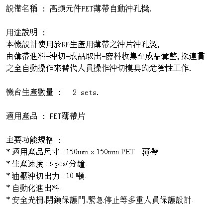 高頻元件PET薄帶自動(dòng)沖孔機(jī)